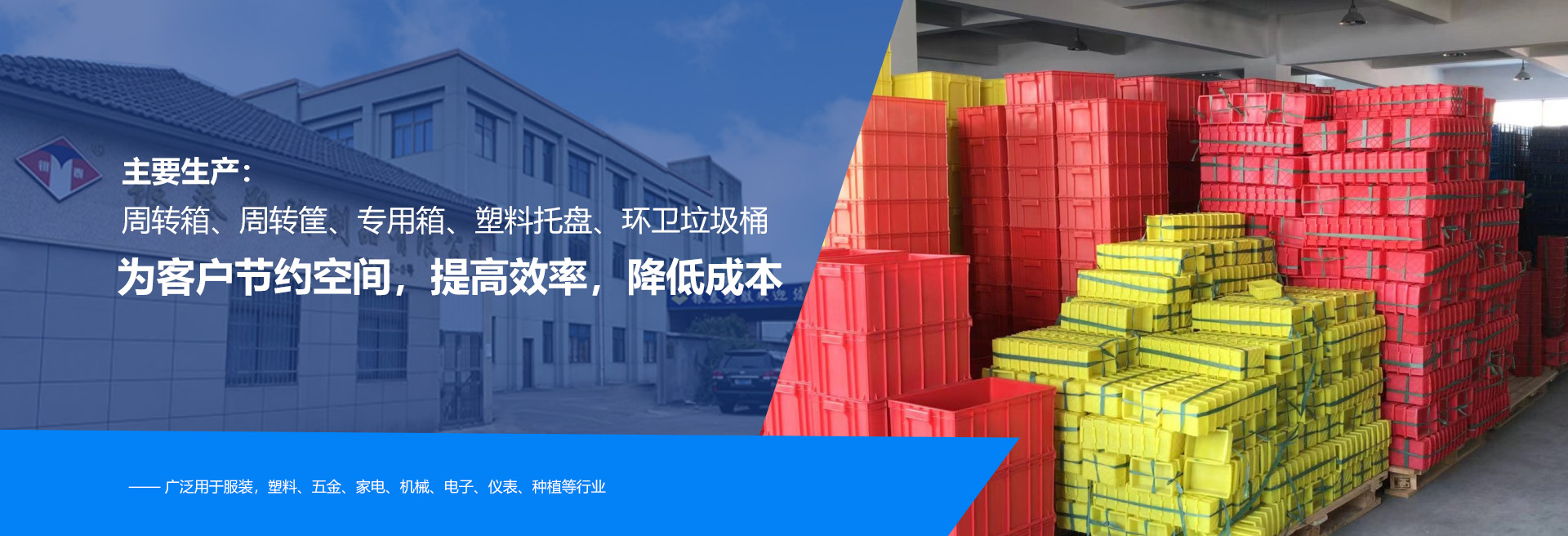 公司經(jīng)過幾年的發(fā)展,公司已形成周轉(zhuǎn)箱、周轉(zhuǎn)筐、專用箱、塑料托盤、環(huán)衛(wèi)垃圾桶等幾個系列,并可訂做特殊規(guī)格及防靜電產(chǎn)品,廣泛用于服裝,塑料、五金、家電、機(jī)械、電子、儀表、種植等行業(yè)。本著“為客戶節(jié)約空間,提高效率,降低成本”的理念,竭誠為國內(nèi)外客戶提供更完善的產(chǎn)品和更周到的服務(wù)。